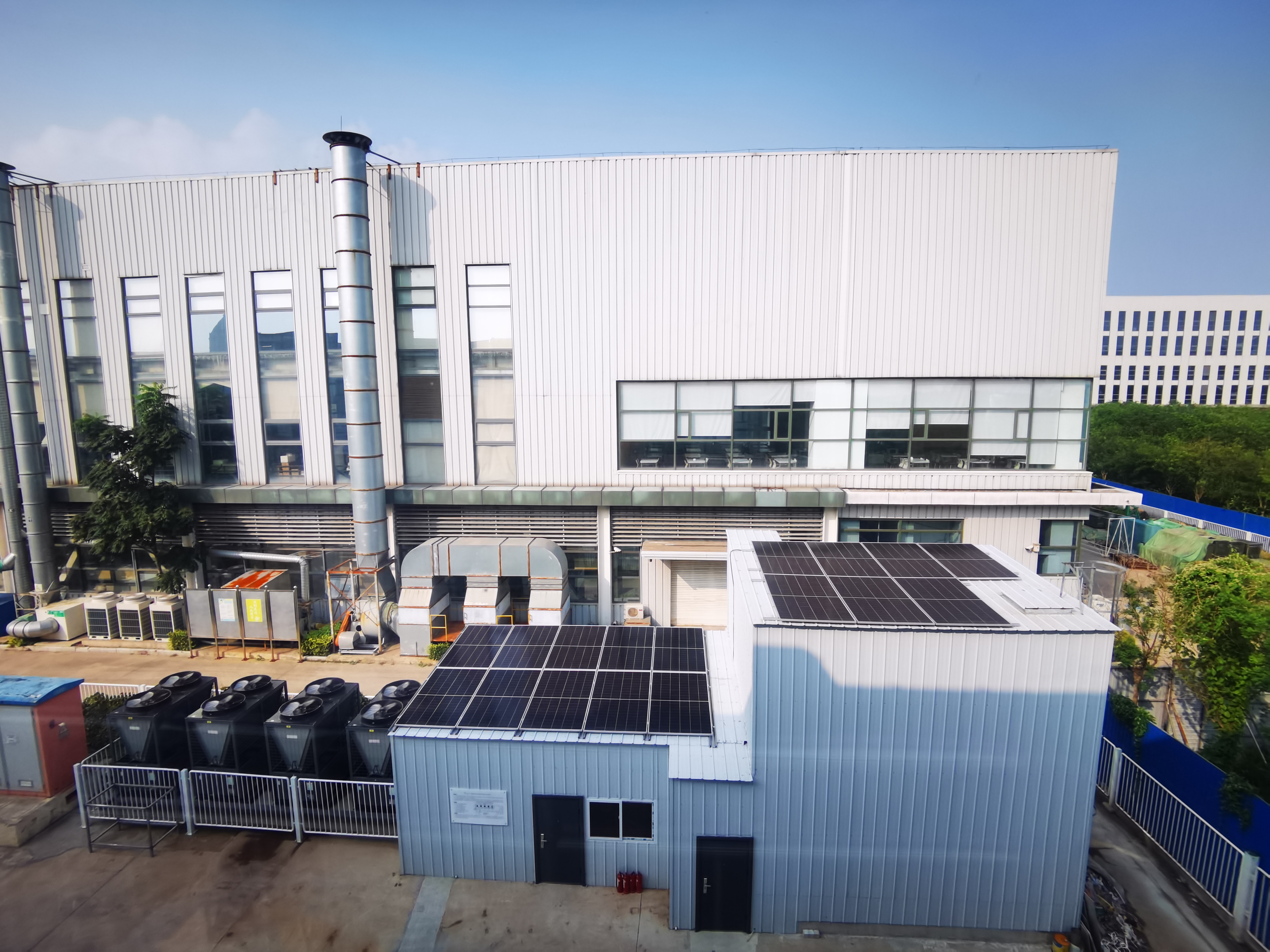 厂房屋顶铺设面积约900平方米,装机容量113KW,设计年发电量约12万kwh,可再生能源利用率30%。