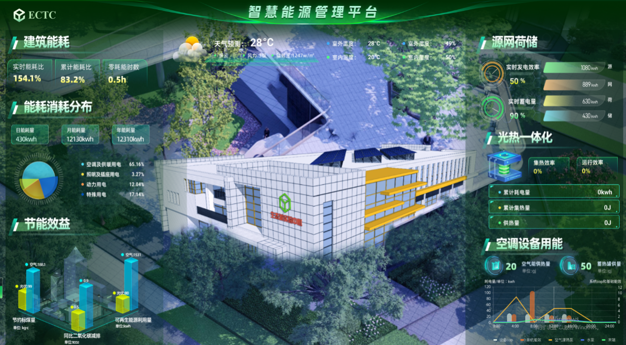 构建智慧能源管理系统,统计显示建筑整体用能、分项用能、逐月、同期等用能情况对比,并对能源系统进行实时数据追踪,进行能源智慧化管理。