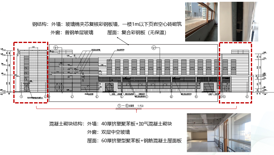 原有厂房建设于2012年,建筑面积5772平方米,原始设计功能需求为工业厂房,其围护结构未考虑节能设计,不满足实验环境及舒适办公对温湿度的要求。从建筑被动式节能理念出发,降低建筑能源需求,对厂房围护结构进行系统改造,通过增加室内保温系统,改造外窗结构,增加屋面保温等方式,提升原有厂房品质,降低能源需求。